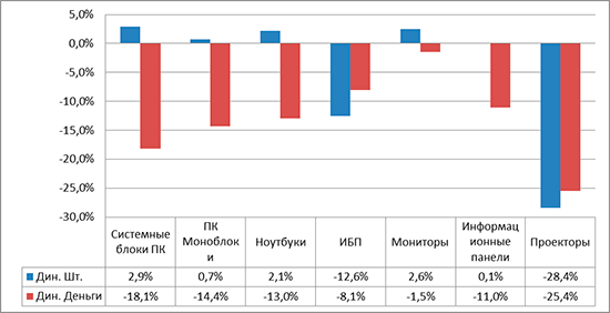 Рис. 2. Динамика в ряде сегментов российского ИТ-рынка