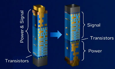 В версии Intel при производстве микросхем сеть энергоснабжающих межсоединений (PDN) переносится с фронтальной на тыльную сторону кремниевой пластины с максимальной утилизацией применяемых сейчас технологических процессов.