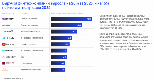 Финтех – это очевидно сейчас одна из самых быстрорастущих отраслей экономики. Да, пока сам по себе он генерирует не самые большие (в масштабах России) деньги – порядка 400 млрд. рублей выручки в 2024 г. (исходя из оценки в 250 млрд. для 100 крупнейших физтехов). Но это без Финтехов-банков и Финтехов-маркетплейсов (Яндекс, Озон, Вайлдберис и т. д.). Уже сейчас Финтех оказывает огромное влияние не просто на функционирование и развитие финансовой инфраструктуры, но и на всю социальную сферу страны и на бизнес в целом.