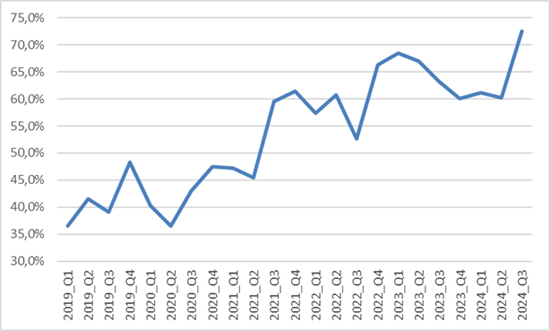Доля RT-решений внутри сегмента легких Онлайн, в натуральном выражении. Данные ITResearch