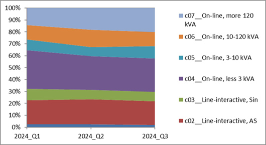 Суммарно за 3-й квартала 2024 г. было продано 985 тыс. ИБП на 277 млн долл. В штуках этот период потерял к аналогичному интервалу прошлого года 11%, а в деньгах снижение составило 9,2% (основной спад был в 1-м квартале). Напоминаем, что прошлогодний уровень задал очень высокую планку сравнения, повысившись к 2022 г. более чем на 50%. Так что текущее снижение мы с уверенностью считаем скорее техническим движением, чем сломом восходящего тренда.