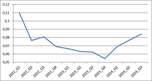 Благодаря оперативному появлению данных за 3-й квартал у нас появляется возможность более подробно посмотреть динамику внутри 2024 г. и зафиксировать текущее состояние рынка.